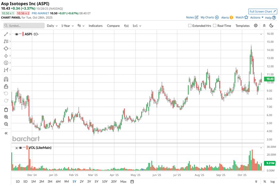 Somewhere in this power-packed storyline sits ASP Isotopes (ASPI), emerging as a beneficiary of the nuclear wave. For an investor who likes both science and momentum, this name suddenly reads like a headline. ASPI stock rose 3.4% intraday after the Oct. 28 news.