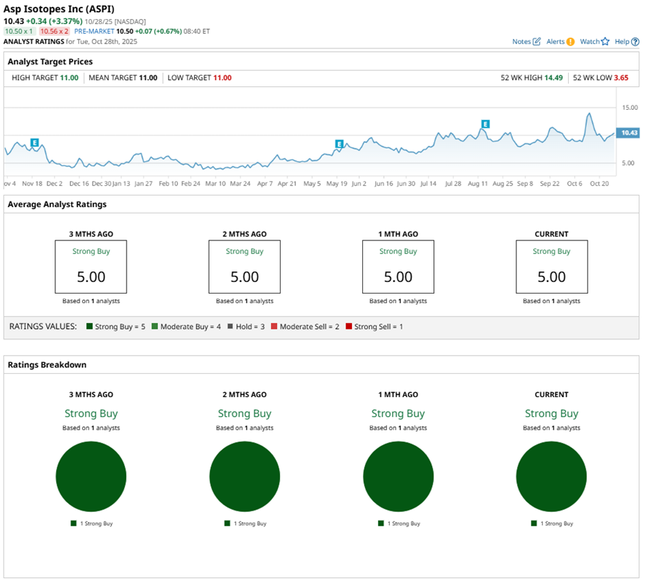 Among the voices cheering the loudest for ASPI is Lucid Capital analyst Alex Fuhrman, with a “Buy” rating and $15 price target. The analyst believes ASP Isotopes is “entering a phase of rapid growth,” fueled by its transition to commercial isotope production.