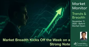 U.S. equities started the week with a clear breadth surge. Monday’s session (Nov 10) saw a convincing shift in participation, with improving leadership and technical strength across multiple timeframes. While not yet indicative of a full-blown uptrend, the breadth recovery strengthens the case for bullish continuation if follow-through persists.